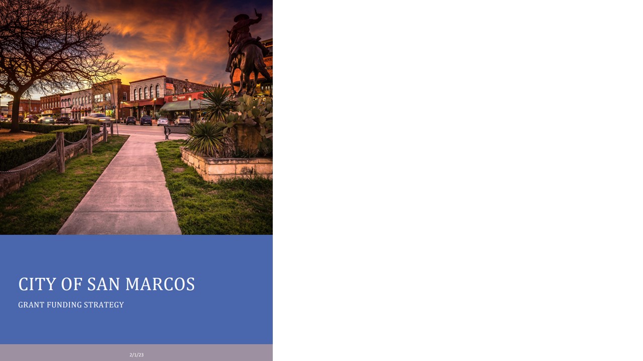 Cover of the grant funding strategy deliverables for the City of San Marcos, Texas.